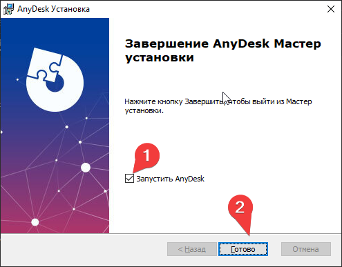 • Если галочка "Запустить Anydesk" не стоит, то поставьте ее и нажмите "Готово"