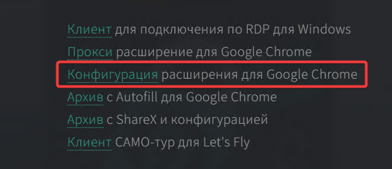- Вернитесь на приветственную страницу -> Постскриптум и выберите ссылку Конфигурация расширения для Google Chrome для скачивания конфигурации.