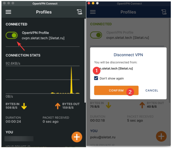 • Для включения и отключения VPN в дальнейшем используйте ползунок в приложении