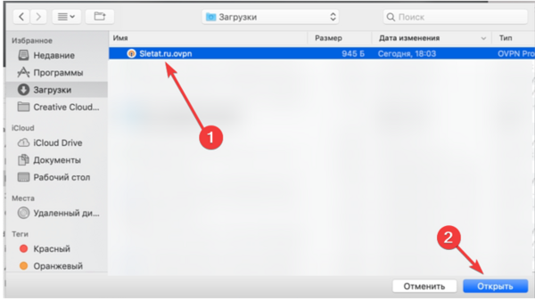 • В папке загрузок выберите файл Sletat.ru.ovpn